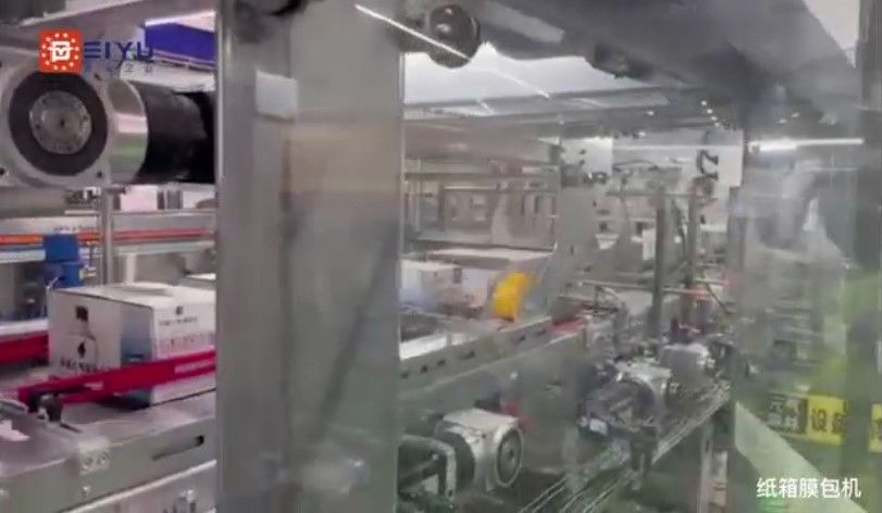 The packaging machine is mainly composed of a frame, a box separation mechanism, a box pushing mechanism, a film placing mechanism, a film wrapping mechanism, etc.