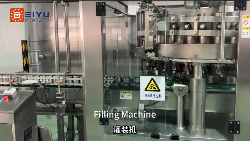Production line equipment: filling and capping machine, empty can depalletizer, empty can sterilization and cleaning machine, bottle/box Conveying system, electrical control system, water blowing machine, can turnover machine, sterilization kettle, heat shrink film packaging machine, carton wrapping machine, palletizer, carton packing machine, etc.; according to different material processes, it can be configured with warm bottle/cooling spray tunnel, loading and unloading cage machine and fully automatic trolley, full can palletizer, full can depalletizer;