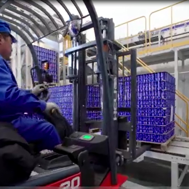 This system is suitable for palletizing and depalletizing empty cans. It is mainly composed of empty cans palletizer, depalletizer, and empty cans conveyer system. The lifting system uses hydraulic drive. The parallel shift of the cans is clamping and shifting way by synchronous belt drive.