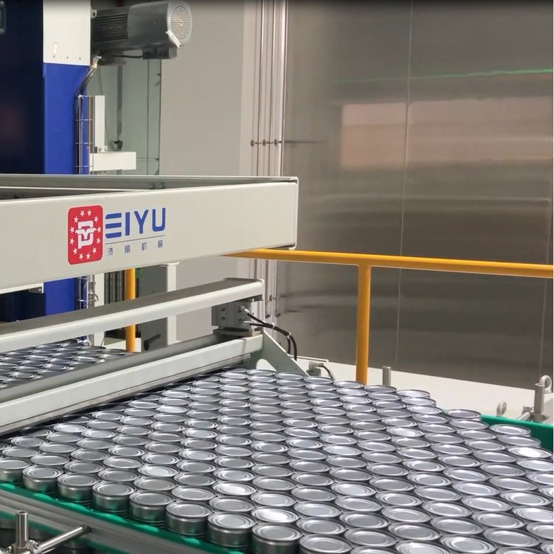 This system is designed specifically for the efficient palletizing and depalletizing of full cans. It consists of a full cans palletizer, depalletizer, and a reliable full cans conveyor system. The lifting mechanism is powered by hydraulic drive, ensuring smooth and precise movements. The cans are securely clamped and shifted in parallel motion using a synchronous belt drive.