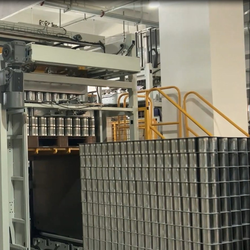 This system is designed specifically for the efficient palletizing and depalletizing of full cans. It consists of a full cans palletizer, depalletizer, and a reliable full cans conveyor system. The lifting mechanism is powered by hydraulic drive, ensuring smooth and precise movements. The cans are securely clamped and shifted in parallel motion using a synchronous belt drive.